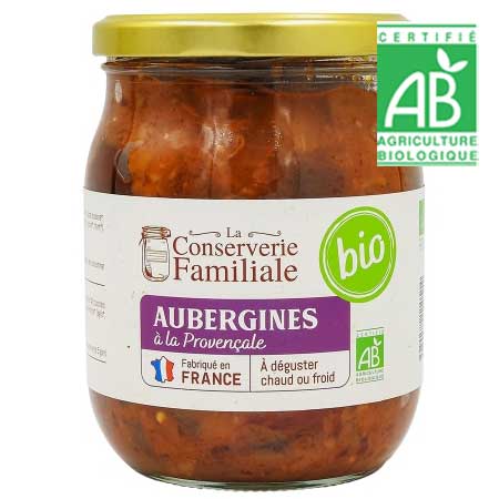 Aubergines frites, Pulpe et purée de tomates, Oignons, Poivrons rouges, Sucre de canne, Huile d’olive vierge extra, Sel marin, Acidifiant : jus de citron, Epices* et plantes aromatiques (ail, poivre, thym).