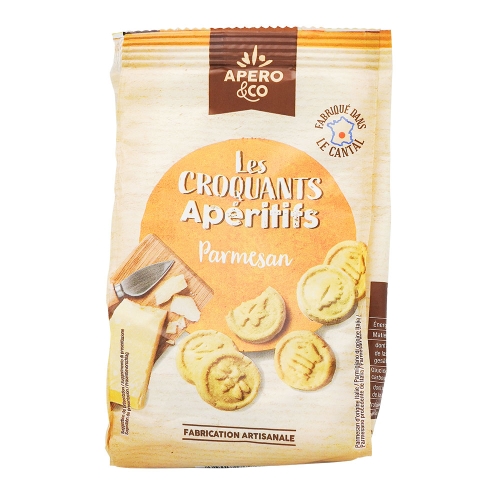 Farine de BLE, BEURRE, parmesan parmigiano reggiano AOP (LAIT, sel , présure),OEUF, sucre de canne, poudre de LAIT écrémé, sel.