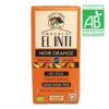 Ingrédients : fèves de cacao, panela, oranges confite 15%, beurre de cacao, huile essentielle d’orange