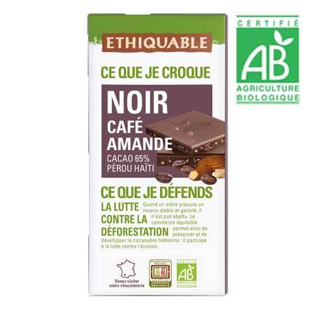 Chocolat noir au café et aux amandes issu du commerce équitable et de l’agriculture biologique