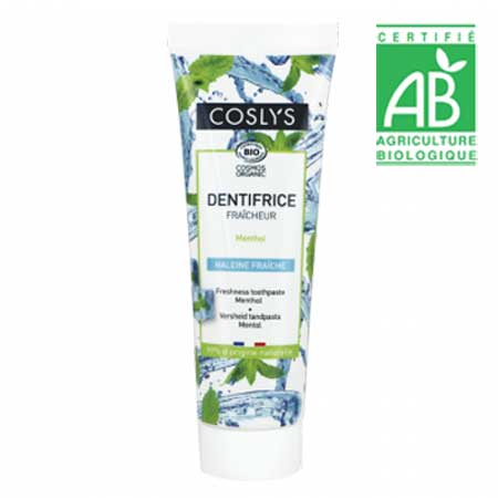 L’alliance du menthol et de l’huile essentielle de menthe poivrée donne au Dentifrice Fraîcheur Coslys son pouvoir rafraîchissant pour une meilleure hygiène buccale et à une haleine fraîche.