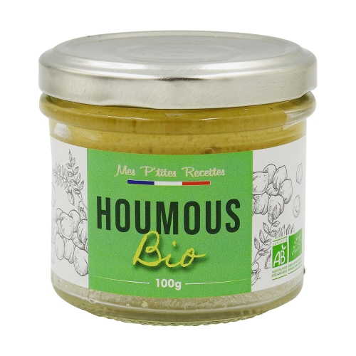 Pois chiches réhydratés* 53% (non UE), eau, huile d’olive vierge extra* (UE),purée de sésame* 3% (non-UE), sel (UE), ail* (UE) jus de
