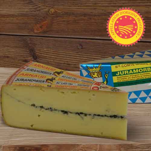 Le Morbier AOP un fromage au lait cru à pâte pressée non cuite, affiné 45 jours, facilement reconnaissable à sa raie noire au milieu.