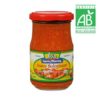 Purée de tomates* , pulpe de tomates*, viande de bœuf précuite*, oignons*, carottes*, huile de tournesol*, sucre de canne*, sel de Guérande, amidon de BLÉ*, épice*, plantes aromatiques* (ail, basilic, girofle, laurier, poivre, romarin, thym), arôme naturel acidifiant : acide citrique (E 330). *Ingrédients issus de l’agriculture biologique.