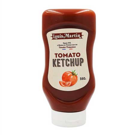 Purée de tomates, Sirop de glucose-fructose, Vinaigre d’alcool Sucre, amidon modifié de mais (E 1422), Sel, Arômes naturels, Acidifiant : acide citrique, Arôme naturel d’oignon.